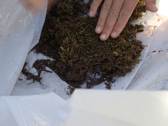 コケや木の葉、犬の毛のようなものが入っていました。