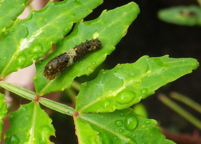 ニンジンでは、キアゲハの幼虫がお食事中でした。