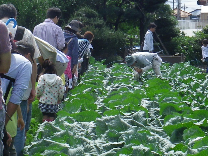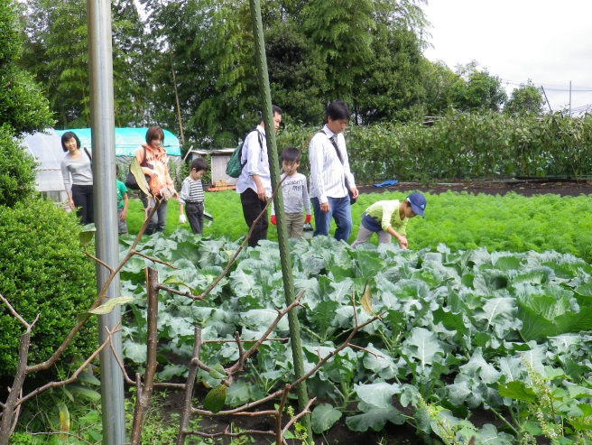 キャベツ畑に移動して、チョウを観察してアオムシを探しました。