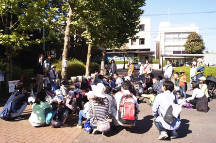 まずは、すずかけ台駅前で受付をして、赤、青、黄、緑のグループに分かれ、自己紹介をしました。