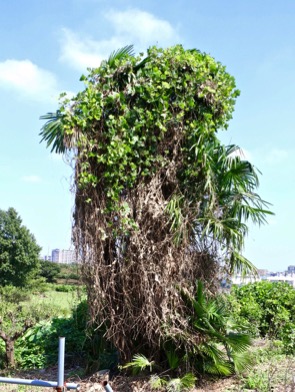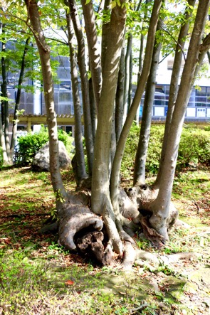 駅前の広場では、二種類の木がくっついている下の写真の木を探しました。