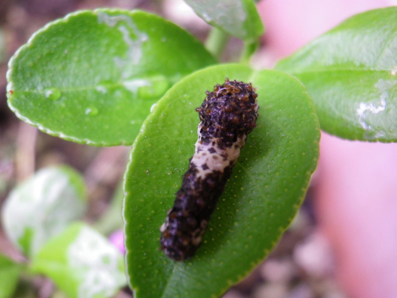 三角花だんのウマノスズクサには、ジャコウアゲハの幼虫がいました。