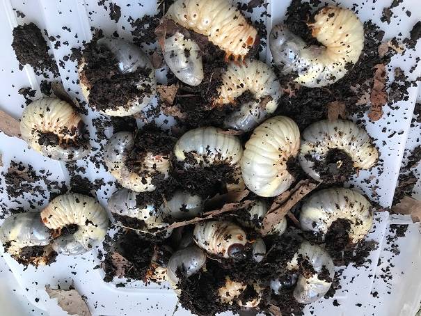 実は、夏に5年生の有志のメンバーがカブトムシを呼ぶために、畑の隅にたい肥の袋を仕掛けました。これが見事、成功して、幼虫が50匹ほど大きく育っていました。そのカブトムシのおすそ分けです。