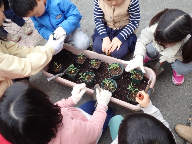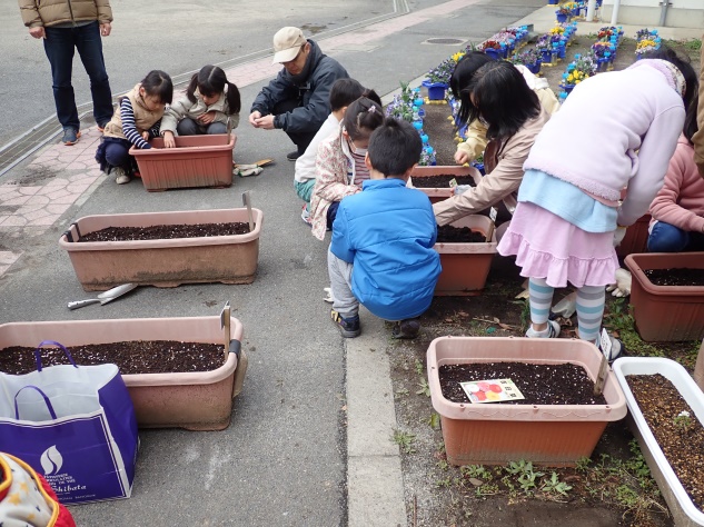 みんなの希望も入れて決めた花のタネまきと苗を植えました。