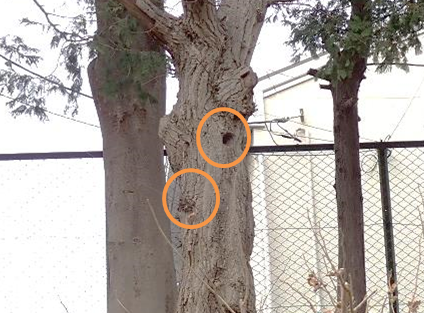 白門の外の斜面には、アオゲラの巣がありました。