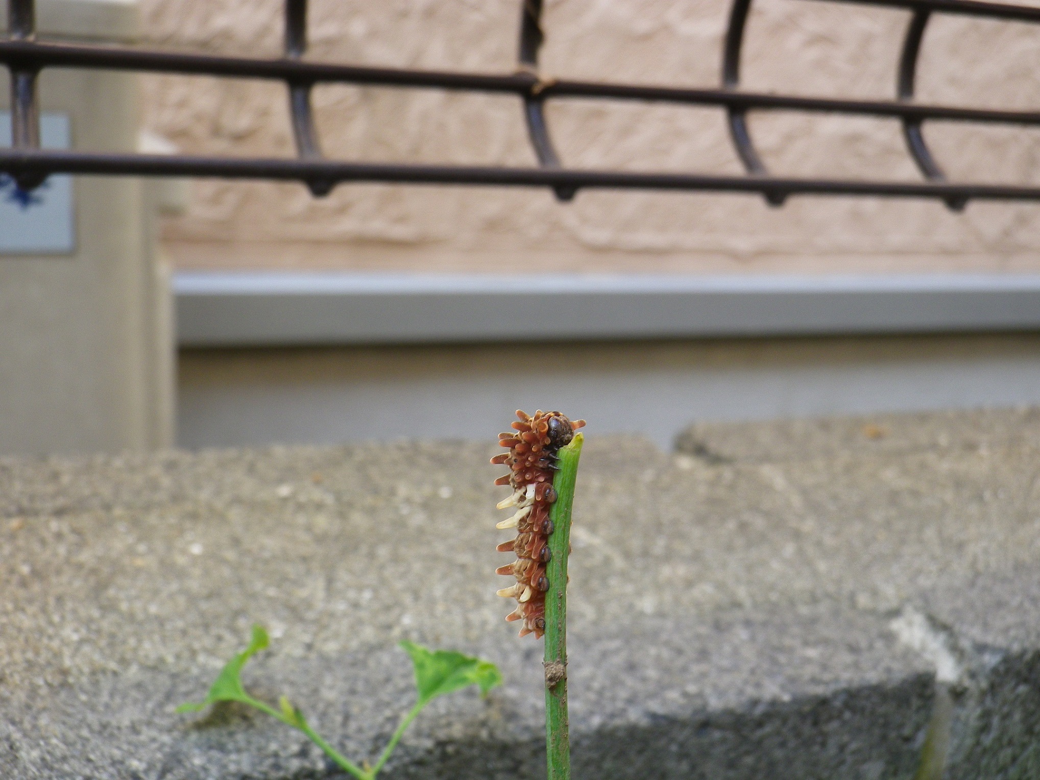 小さなウマノスズクサをすべて食べつくし一昨日から行方不明になっていたのですすが、少し離れたところのウマノスズクサで発見。3令になっていました。