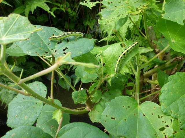 路肩の芙蓉にフタトガリコガヤの幼虫発生。+オクラに発生する害虫として