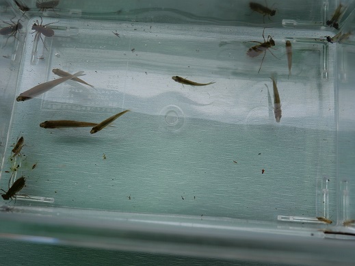 メダカの他にヤゴやザリガニ、モツゴ、外来種のファットヘッドミノーなど捕まえ、観察することができました。