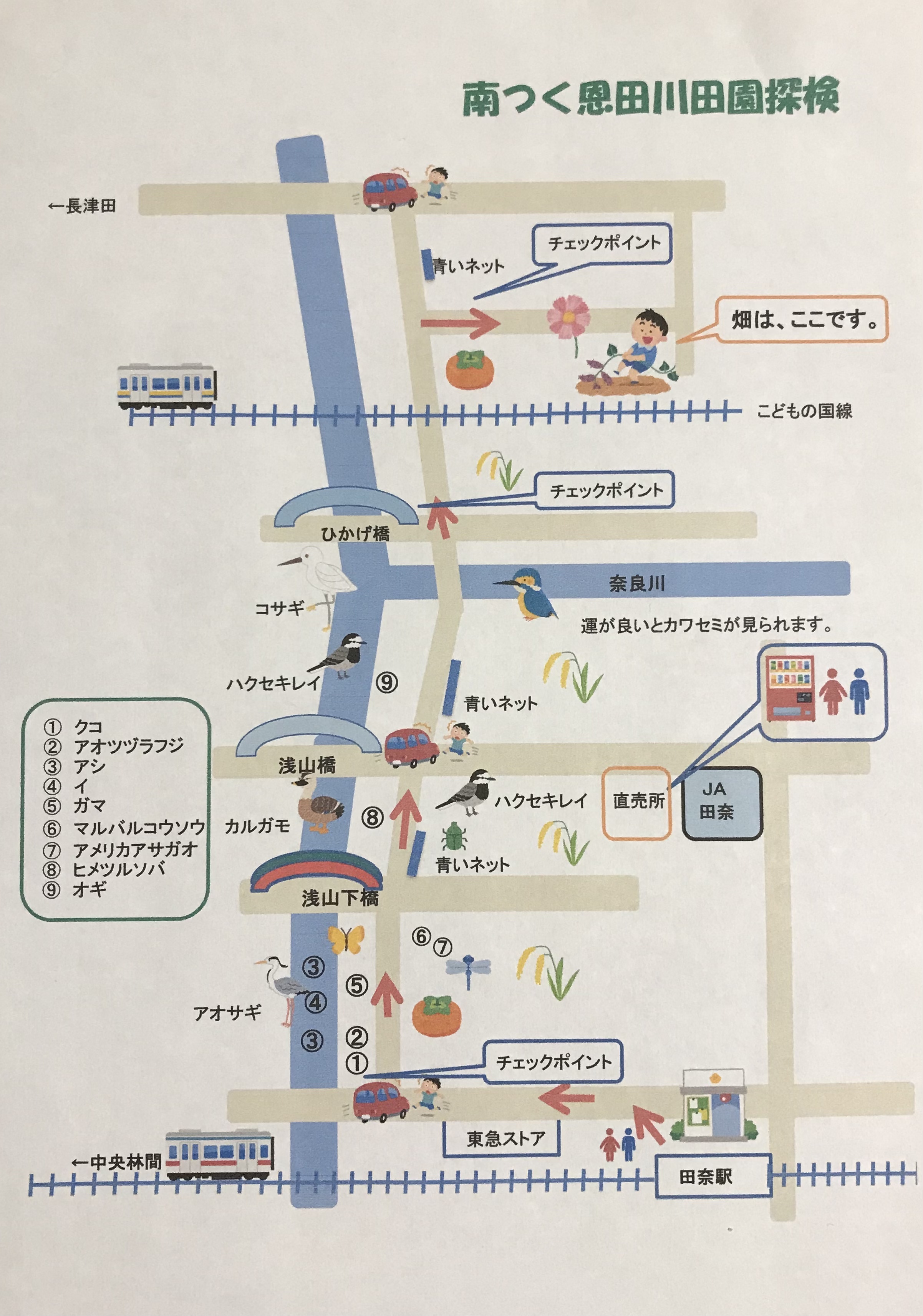 今年度2回目の活動は、田奈駅から田園風景の残る恩田川沿いを歩きました。